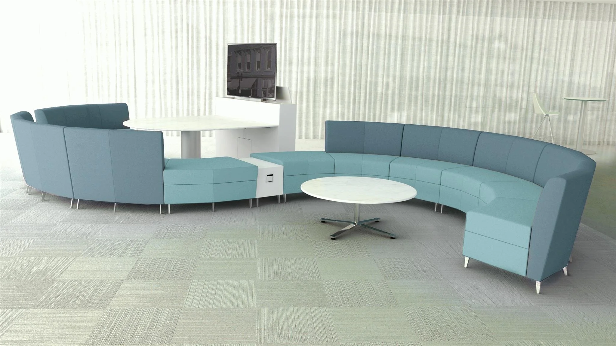 Nevins seating collection has been created to provide a functional and aesthetically inviting series for public spaces. The unique use of different materials establishes a distinct and striking environment.